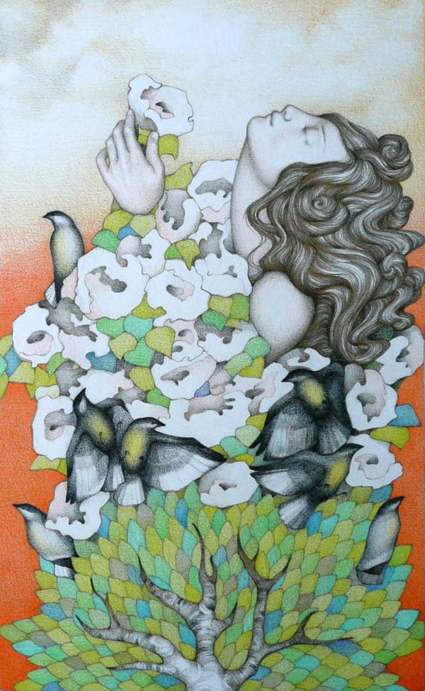 But she hasn’t always been influenced by just these parts. Growing up in the foothills of the Sonoran Desert, she was strongly influenced by the brilliance of the natural world from a young age. She began drawing as a way of recording emotions and experiences, and soon realized it was also a voice for expressing ideals. After studying art briefly in college, she went on to attend an artist’s school where she focused on figure drawing.