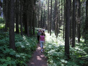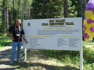 Marked with a 120 million year old petrified tree stump donated by the Elk Valley Coal Corporation, the trail meanders through a lush forest of pine, spruce and larch, with kilometer signs made from an old larch snag directing the way. Picnic tables and benches are in a few locations giving people a place to rest or just enjoy the view. Brochures will be available at the local Chambers of Commerce to guide visitors as well.