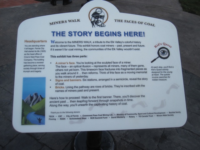 Fernie Miners Walk Society thanks the following for their contribution towards the Miners Walk Exhibit: