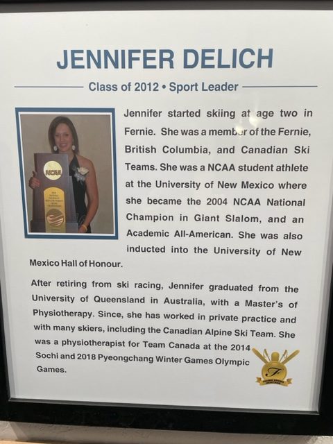 In the Sport Leader Category, a woman born, raised and now working in Fernie who has been recognized for competition Nationally & internationally. Karen said that in “any athlete’s journey, they have 3 milestones in their career: A Personal best, a podium, and life after competitions. This Sport Leader is Jennifer Delich”. Educated in the Ridgemont Elementary and Fernie Secondary Schools she obtained world class training and experiences, now back in Fernie practicing physiotherapy, helping people of all ages to stay healthy. Fernie is fortunate to have her and her skills in Fernie. Jennifer started skiing at age two, she was a member of the Fernie and Canadian ski teams and a NCAA student athlete at the University of New Mexico where she became the 2004 NCAA National Champion in Giant Slalom and an Academic All- American. She was inducted into the University of New Mexico Hall of Honour. After retiring from ski racing Jennifer graduated from the University of Queensland in Australia with a Masters of Physiotherapy. She has worked in private practice and with many skiers including the Canadian Alpine ski team. She was a physiotherapist for Team Canada at the 2014 Sochi and 2018 PyeongChang Winter Olympic games.”