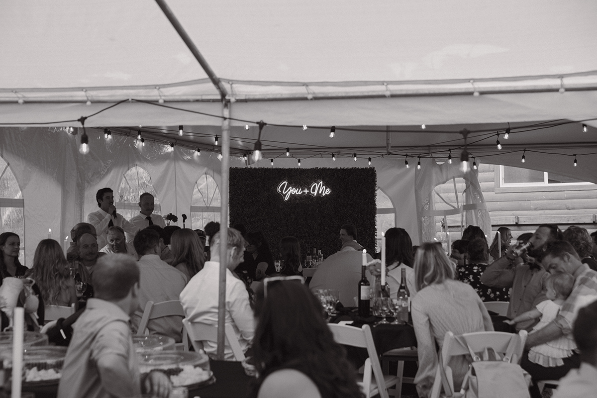 With eight bedrooms and comfortable indoor gathering space, the lodge suits weddings of up to 30 guests. For larger celebrations, an on-site event tent is available to rent, including tables and chairs, extending capacity to 60. Those dreaming of a full-scale outdoor celebration with up to 150 guests can bring their own tents and rentals to create a custom venue in the wilderness.