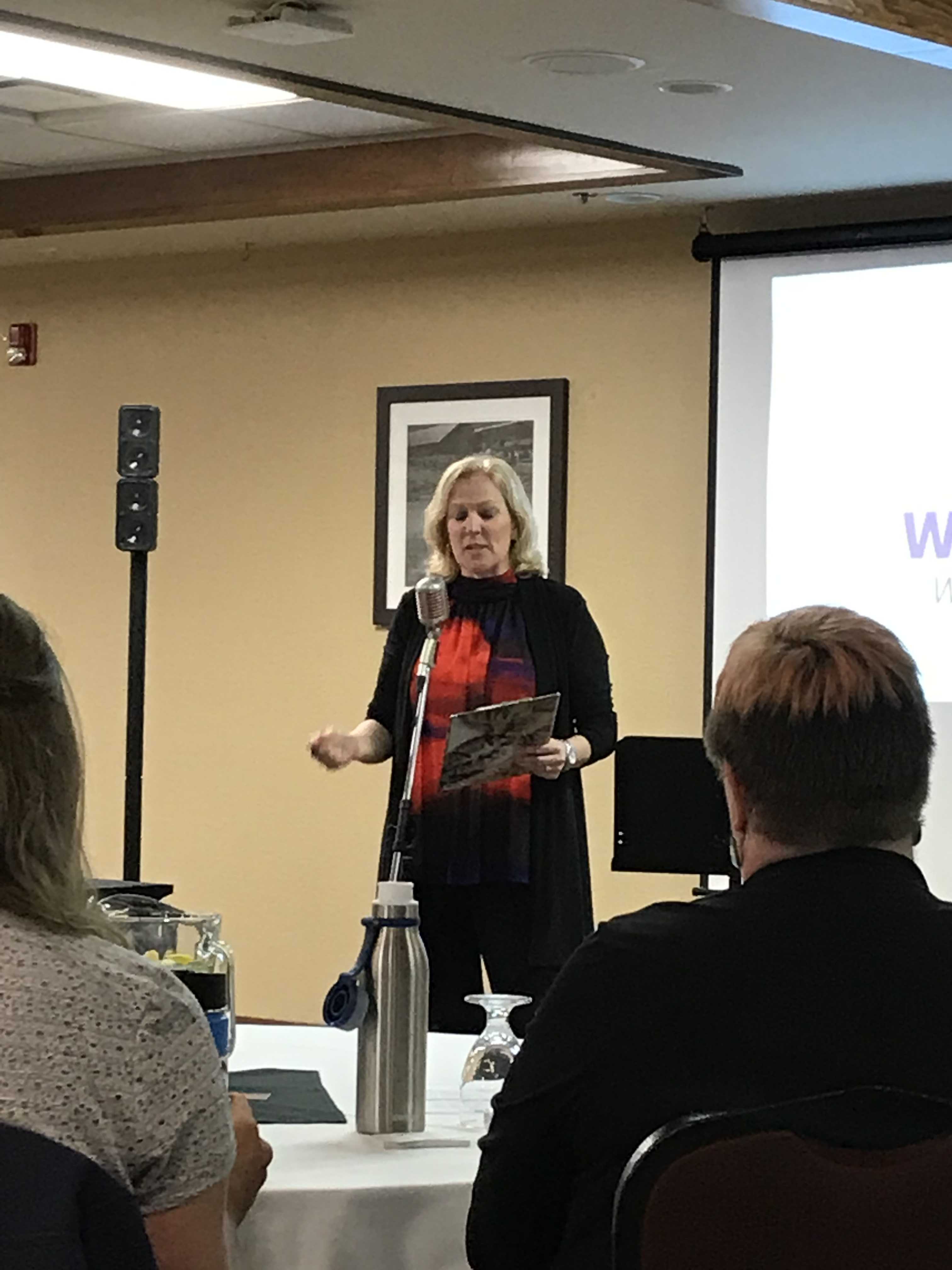 To begin Sue welcomed everyone stating “you are guaranteed a ride” adding that they would be sitting on the edge of their seats. She thanked sponsors and volunteers and mentioned upcoming across Canada events.
