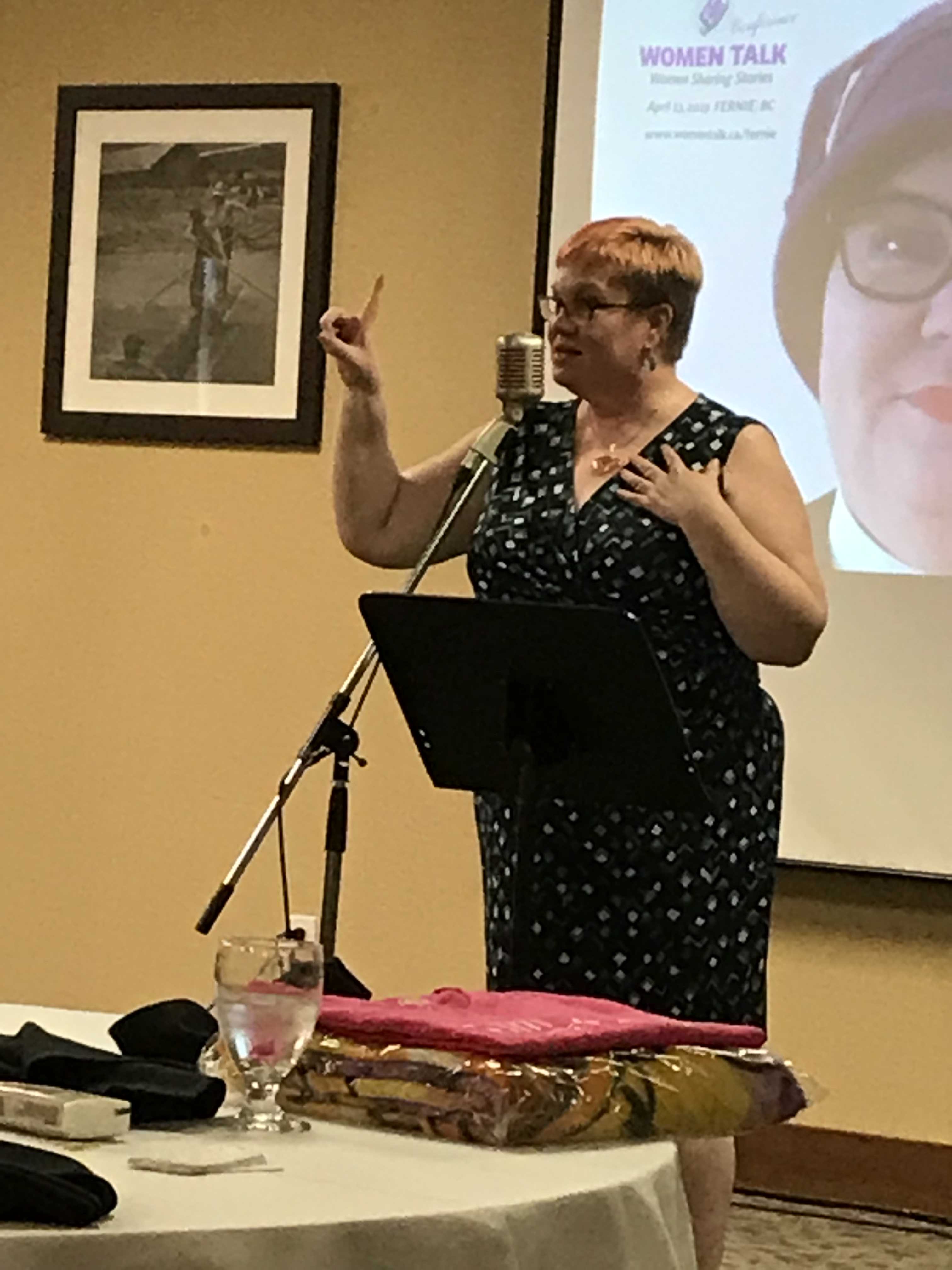 Brigitte was next and showed a short video depicting some history on Women Talk. She then spoke about the many ski trips she has made to Fernie and how the concept of the Talk came about. She said she enjoyed the 18 minute video TED Talk and thought why not Women talk? The name was available and after a year of monthly events within Calgary decided to take it to other cities. She said over the years she has been told how this movement has changed and saved lives. Personally she is grateful for this “calling, this mission” as she is passionate about women having the opportunity to share in a positive and uplifting environment.